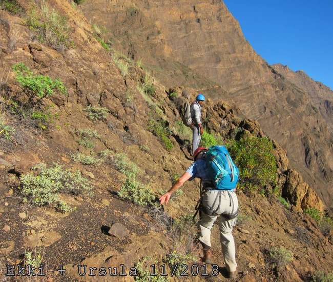 Oben angekommen bietet sich Ihnen wieder ein ganz anderer herrlicher und beeindruckender Rundblick über die Caldeira. Auf der einen Seite der aktive Vulkan und auf der anderen Seite das tiefblaue Meer. Nach einer Pause in luftiger Höhe geht es wieder bergab.