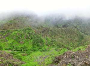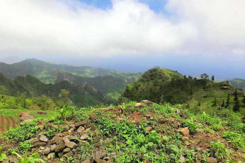 Von hier aus führ der Weg wieder nach unten. Auf schmalen Wegen geht es durch die Felder der Kapverdianer hinunter. Trittsicherheit ist gefordert, denn immer wieder liegen Steine oder Wurzeln auf dem steilen Weg bergab. Dennoch belohnt die Tour auf ganzer Stecke mit herrlichen Ausblicken und schattenspendenden Mangobäumen.