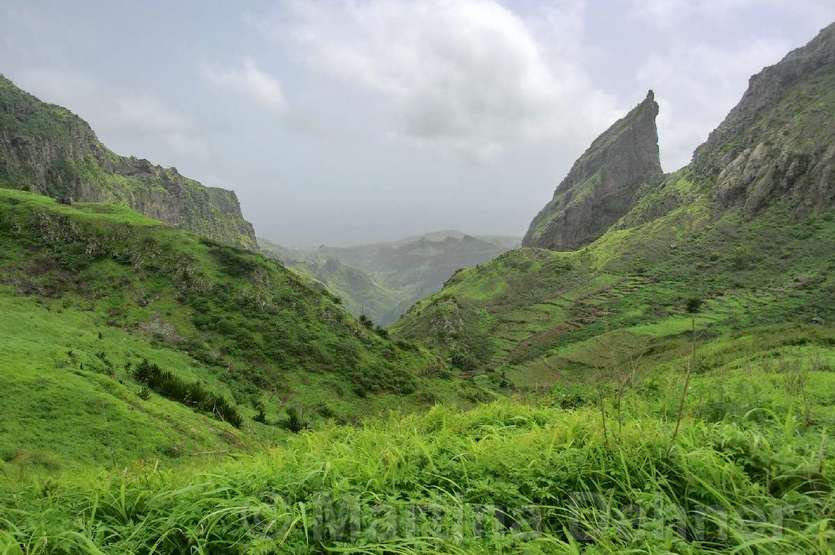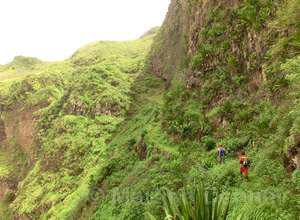 Gleich nach dem Start geht es steil bergauf. Oben angelangt geht es dann auf kurvigen Wegen sofort wieder hinab. Insgesamt folgen zwei weitere Steigungen, allerdings verläuft der Großteil der Wanderung bergab. Gesäumt ist der Weg meist von Algarven, welche meterhohe Blüten tragen, Limettenbäumen und "Língua-da-vaca"-Sträuchern. Zudem führt der Weg oft entlang oder durch Felder der Kapverder, welche dort größtenteils Süßkartoffeln und Mais anpflanzen. In der Ferne kann man auch die dazugehörigen Häuser und Dörfer entdecken, manchmal quert man das ein oder andere Haus auch direkt. Die komplette Wanderung belohnt mit tollen Aussichten. Nach etwa der Hälfte der Strecke gibt es aber eine ganz besondere Aussicht, denn man sieht die West-, Nord- und Ostküste auf einmal. Die Wanderung endet an der Hauptstraße.