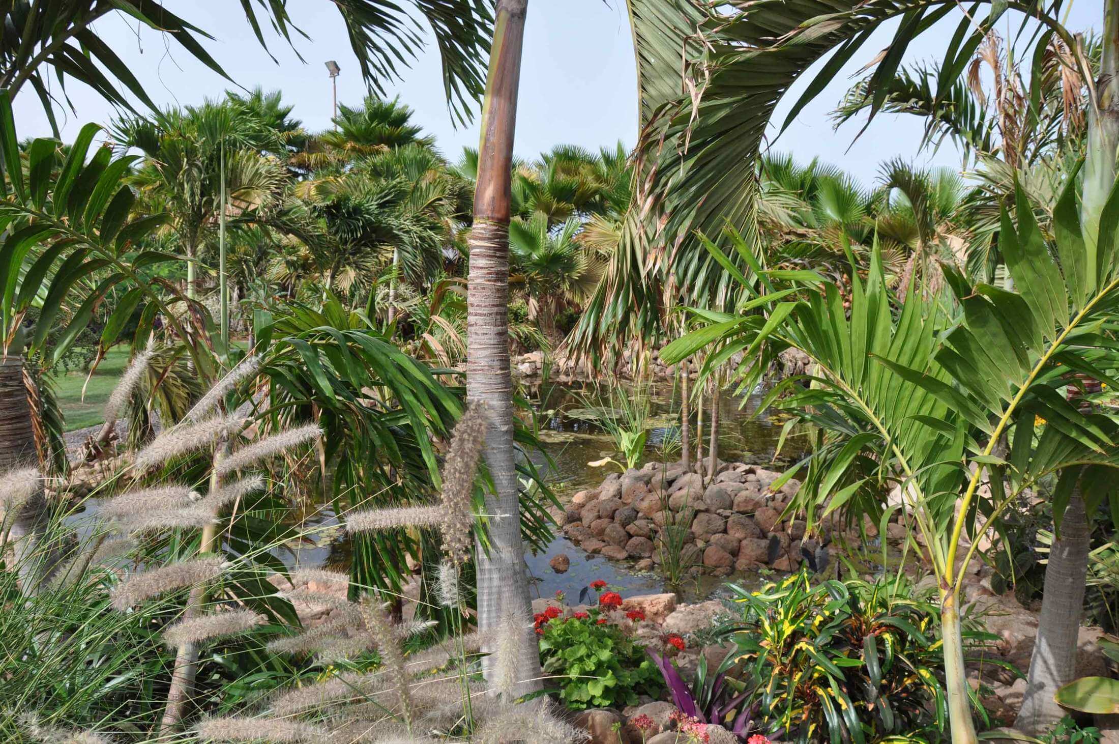 Von der obligatorischen Dattelpalme, der einheimischsten auf den Kapverden und der widerstandsfähigsten gegen das Klima von Sal, bis hin zum kühlen Schatten der Akazie, gibt es mehrere Hektar Grün inmitten der Trockenheit einer Insel, die vom Strandtourismus lebt.