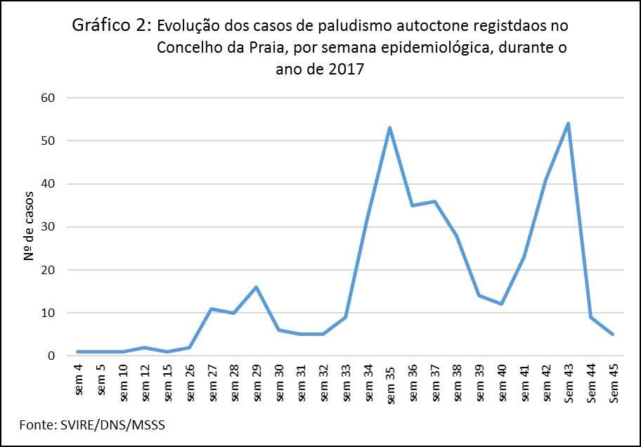 Warnung des kapverdischen Gesundheits-Ministeriums [Online-Ausgabe der Wochenzeitung A Nacao, vom letzten Mittwoch 30.08.2017]. Die bisher 116 aufgetreten Fälle [Stand 1.9.2017] ist der schwerste Malaria-Ausbruch in Praia schon vor Beginn des Regens : 2001 wurden über das ganze Jahr verteilt 65 und 2006 insgesamt 48 autochtone Malaria-fälle gezählt wurden