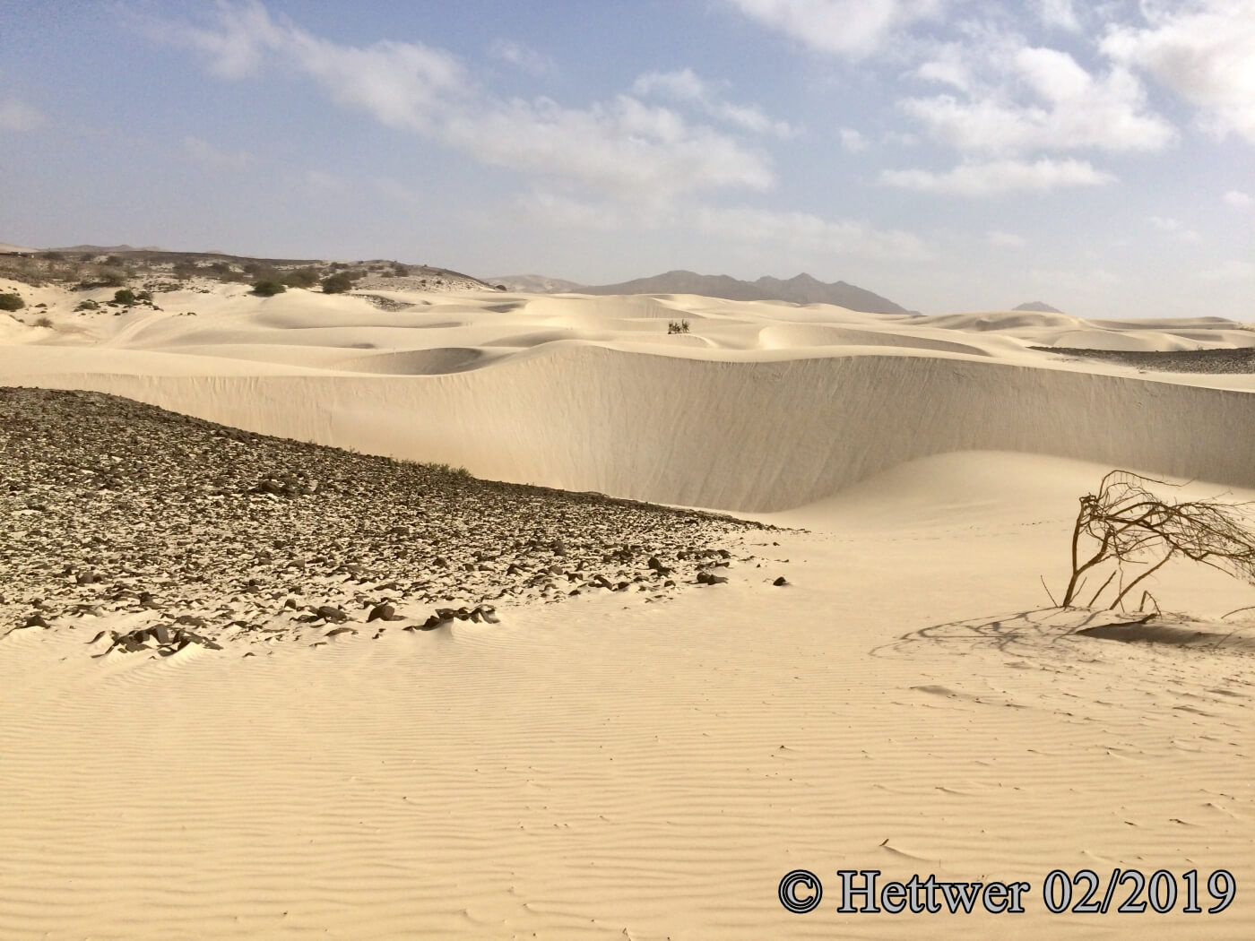 Die nächsten beiden Tage verbrachten wir jeweils mit langen Strandspaziergang, wir beobachteten die Surfer und Kiter, die bei meterhohen Wellen durch das Meer jagten und sahen in der Stadt den Menschen bei ihren täglichen Arbeiten und Gestaltungen ihres Alltages zu. Am dritten Tag buchten wir im örtlichen Touristenbüro eine Inselrundfahrt durch die Deserto de Viana, zum Strand von Santa Monica und die Mondlandschaft bis zum alten Leuchtturm mit unserem Guide Rominik, der uns unterwegs über einige Besonderheiten informierte und uns zu einem leckeren Mittagessen in einen herrlichen Garten führte.