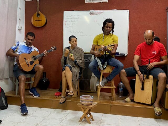 Wir starteten in Mindelo, wo es an unseren ersten beiden Tagen (direkt nach Neujahr) noch sehr ruhig war, was sich bei unserem nächsten Aufenthalt dort komplett geändert hat. Der Empfang durch Guide und Fahrer am Cesária-Évora-Flughafen war herzlich, die Unterbringung im Residencial Mindelo ideal. Der erste Nachmittag brachte gleich den beeindruckenden Besuch in einer Gitarren-Werkstatt mit musikalischen Kostproben. Toll war, dass unser Guide als Sänger zur kapverdischen Musikszene gehört und uns einige Interna daraus näherbrachte. Musik war dann eigentlich bis zum Schluss des Urlaubs stete Begleitung. Die Inselrundfahrt São Vicente gab gute Einsichten in die Infrastruktur der kleinen, trockenen und gebirgigen Insel.
