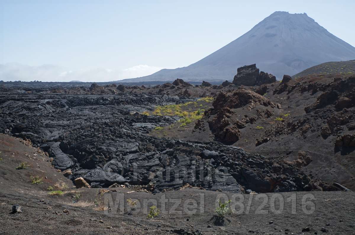 Wir haben auf den großen Pico de Fogo und wieder hinunter 9 Stunden gebraucht. Wie haben Sie das in 5 1/2 Stunden (wie dem Buch "Reise Know How" beschrieben) geschafft? Hier haben uns unsere mitgebrachten Schneegamaschen gute Dienste beim Abwärtssurfen geleistet.