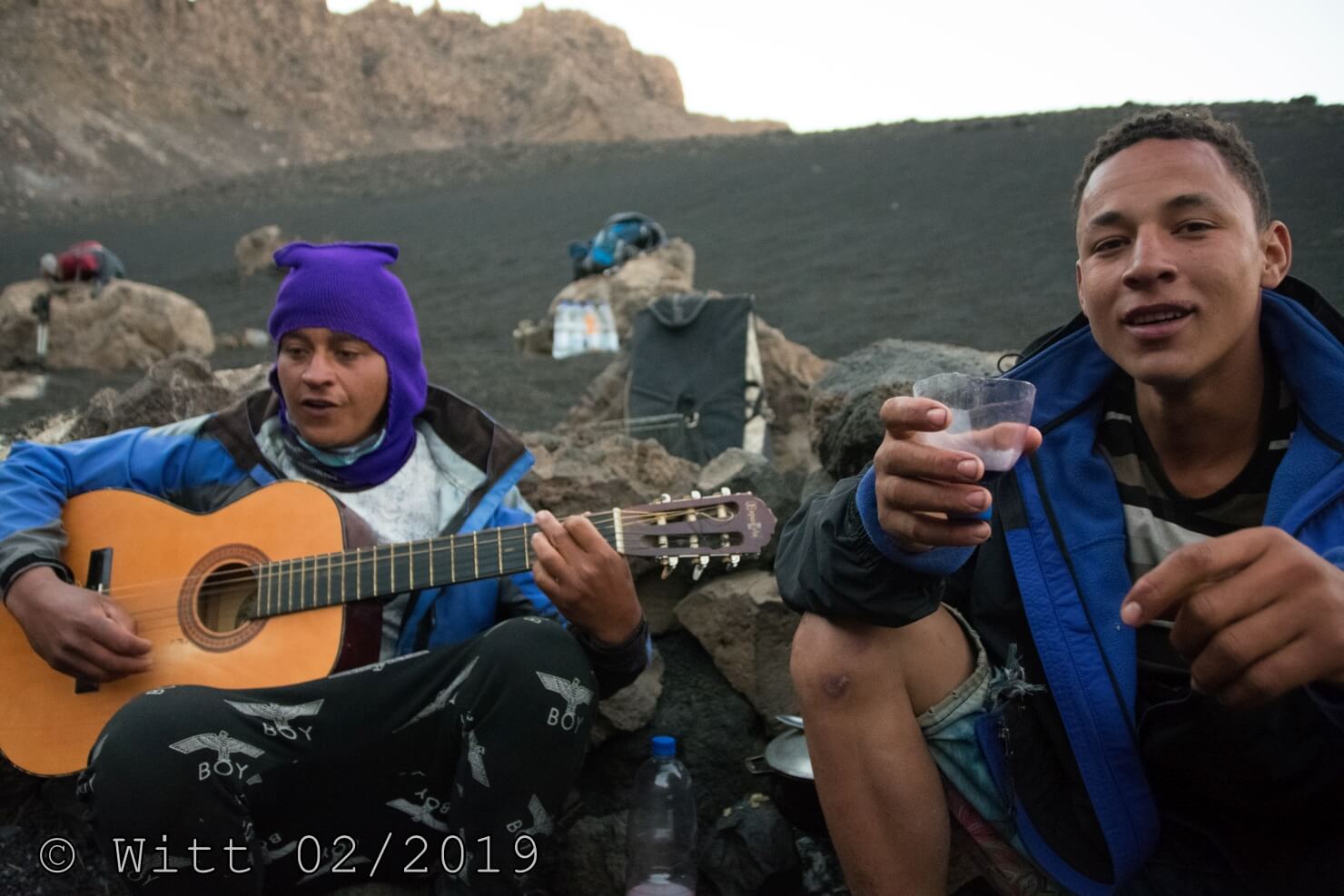 Unsere Begleitung hatte die Temperaturen wohl unterschätzt, die waren z.T. mit kurzen Hosen oben und sahen sich gezwungen, nachts nochmal das Feuer anzumachen. Aber uns ging es gut.