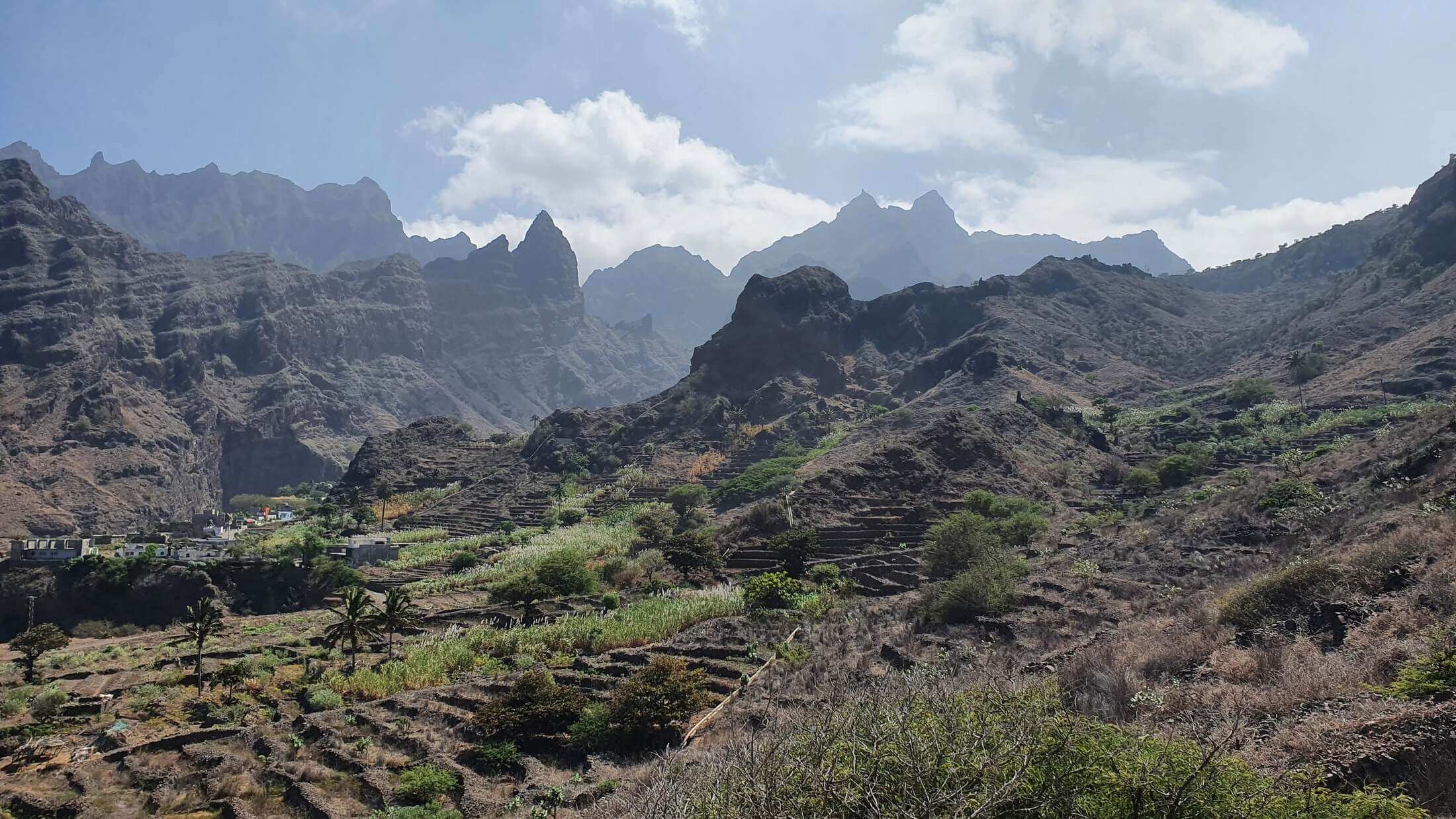 Zuckerrohr, Kokospalmen, haushohe Papayapflanzen und Bananenstauden, der heutige Ausflug beginnt in Ribeira do Paul dem grünsten Ort der Kapverden. Weiter gehts über Passagem bis nach Fontainhas, einem eindrucksvollen Bergdorf an den Hängen der Berge von Santo Antão.