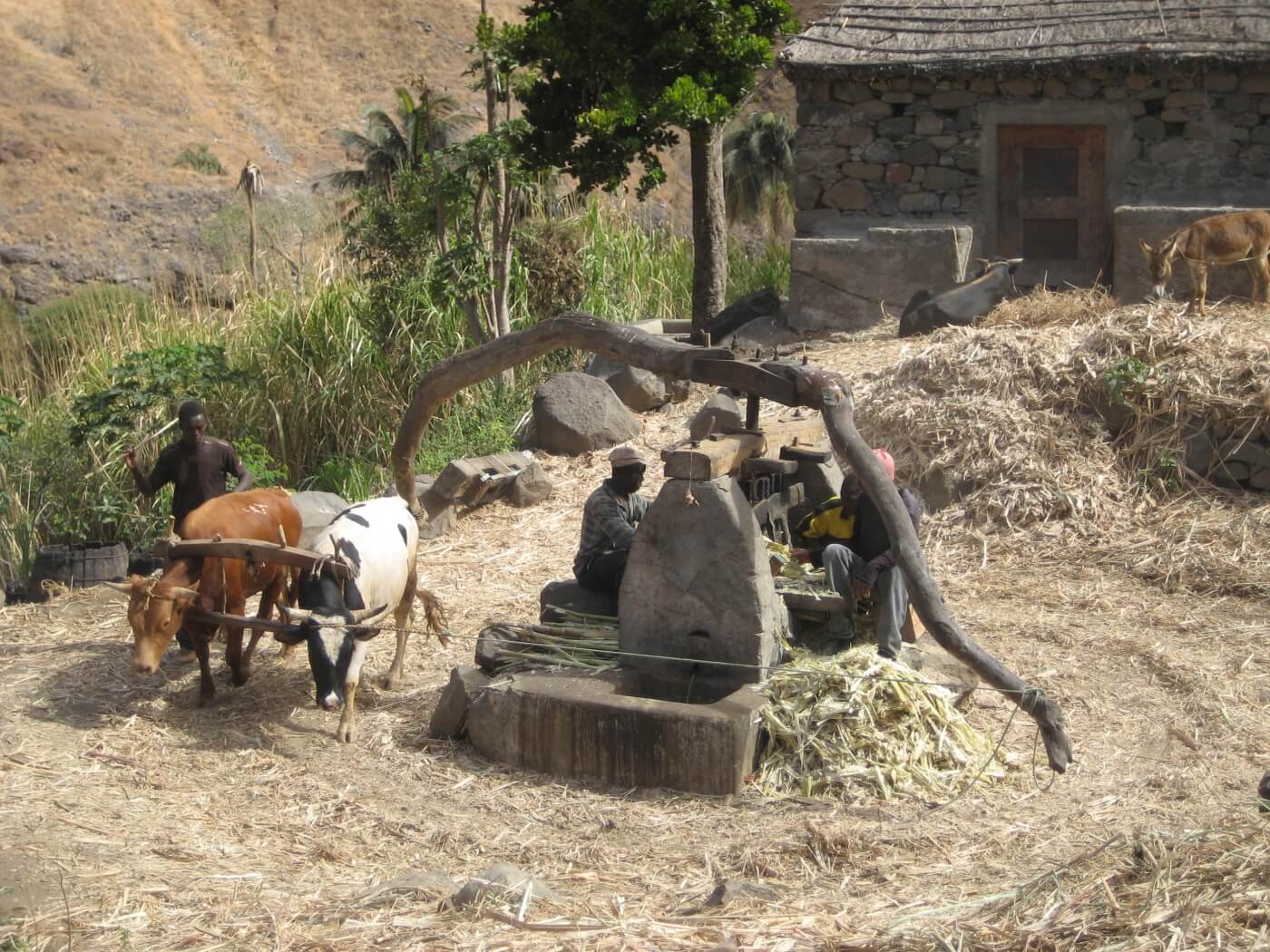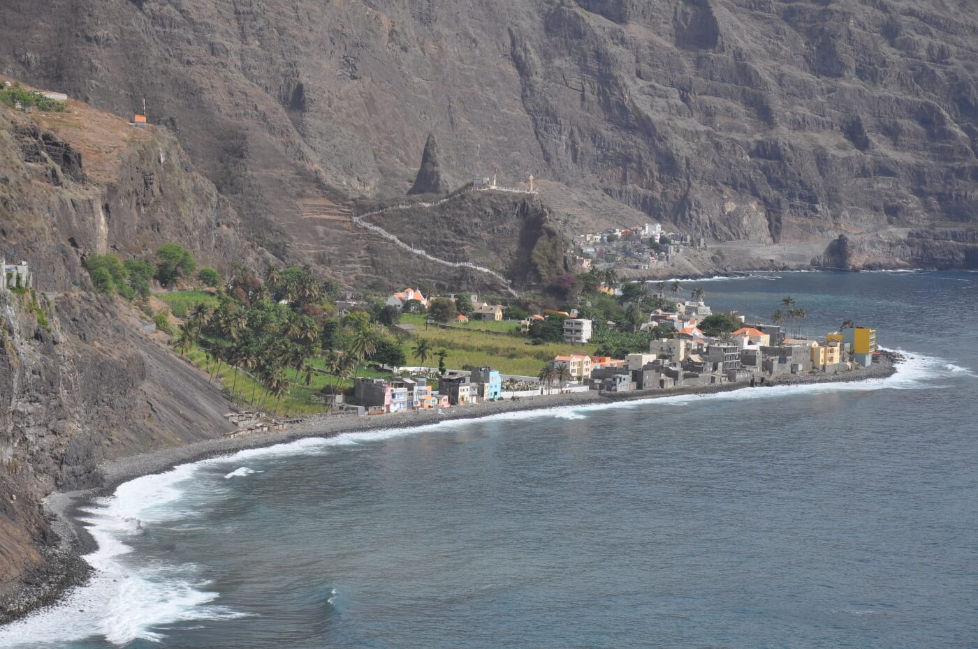Entlang der Küste fahren Sie mit dem Aluguer Collectivo (Sammeltaxi) auf der 2009 eröffneten Asphaltstraße nach Porto Novo. Mit der Fähre geht es über den Kanal wieder zurück nach Mindelo. Weiterflug nach Santiago. Taxifahrt durch das Inselinnere von Santago an den Palmenstrand von Tarrafal.