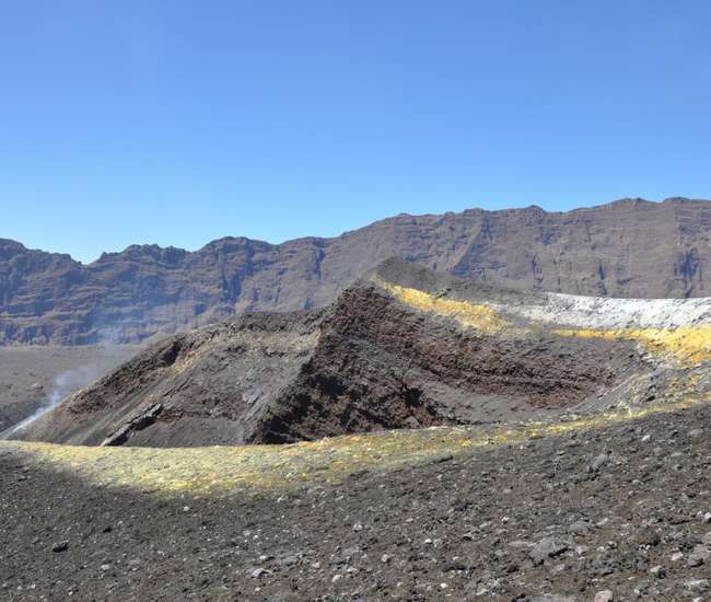 Nach dem Frühstück beginnt Ihr Abstieg zum Pico Pequeno, die Ausbruchsstätte von 1995 und 2014. Wieder hält der Vulkan neue, interessante und abwechslungsreiche Momente für Sie bereit. Fast wie im Tiefschnee gleiten, hüpfen oder rennen Sie durch die grobkörnigen, spitzen feinen Aschen bergab auf den Krater des Ausbruchs von 2014 zu, wo die Schwefelfarben leuchten und der Geruch unverkennbar ist.