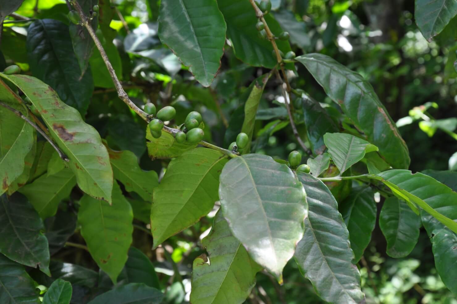 Sie wandern zunächst auf schmalen Pfaden durch ausgedehnte Kaffeeplantagen, passieren fruchtbare Felder auf denen Maniok, Süßkartoffeln, Bananen, Papayas und weiteres Gemüse wächst. Mango- und Cashewbäume zeugen ebenso davon, dass der feuchtere Nordosten der Insel fruchtbar ist und eine gute Ernte einbringen kann.