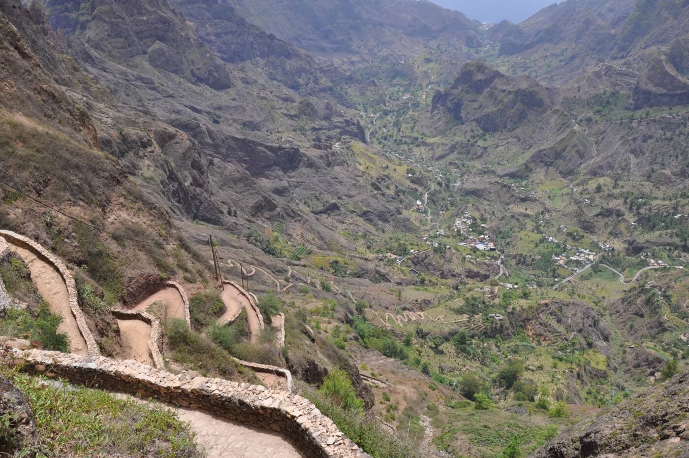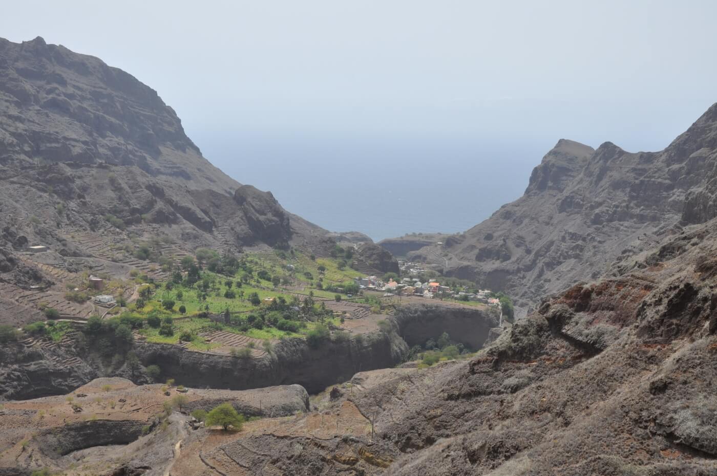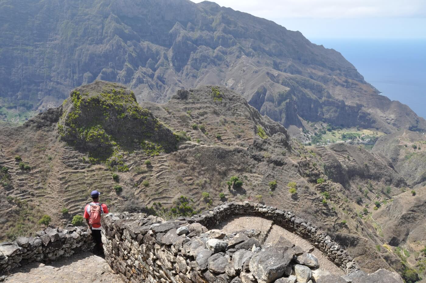 Ihr Wanderweg 102 beginnt direkt an Ihrer Unterkunft. Im Bachbett, gesäumt von den riesigen Yamsblättern, geht es bergan. Sie erhalten einen interessanten Einblick in die bewässerte Landwirtschaft im Tal mit den kunstvoll angelegten Pflanzfeldern. Sie passieren große Brotfruchtbäume, Kokos- und Dattelpalmen, Bananenstauden, Kaffeebüsche und Zuckerrohr. Die üppige Vielfalt ist beeindruckend. Von dem kleinen Pass aus blicken Sie weit über das Tal, bevor Sie sich an den Abstieg zur Straße begeben. Nach ca. 15 Minuten auf der Pflasterstraße erreichen Sie Passagem und wandern nun auf der 101 zurück in Ihre Unterkunft. Oder Sie warten ganz einfach auf den Aluguer und fahren mit diesem „nach Hause“.