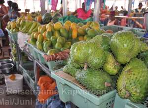 Dies ist der älteste Obst- & Gemüsemarkt der Stadt, auf dem viele Städter gerne einkaufen. Bedingt durch seine Funktion als Hautpstadt und die Kaufkraft der Großstädter und v.a. der ausländischen Diplomaten ist das Angebot gerade auf diesem Markt reichlich, da wird Praia mit allem beliefert, was die Landwirtschaft der ganzen Insel herzugeben vermag.