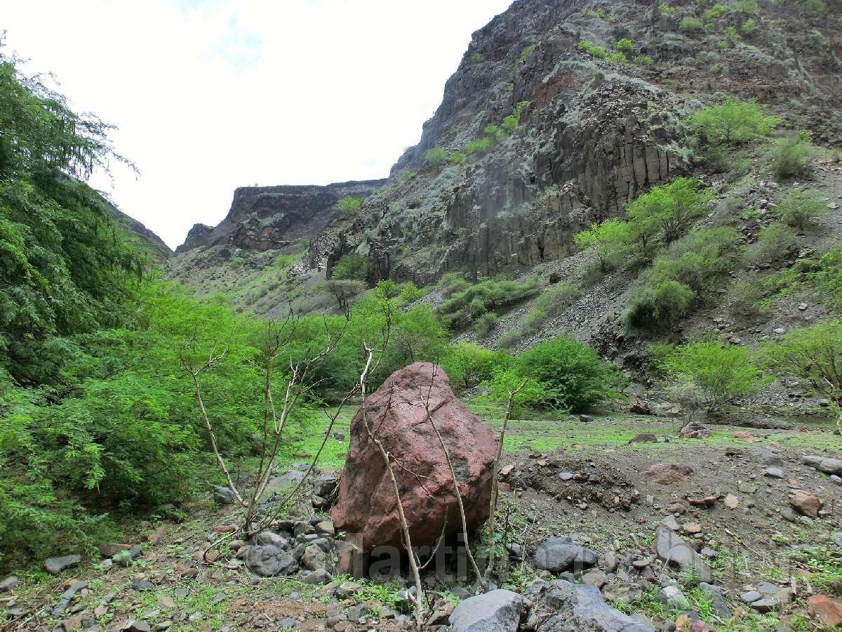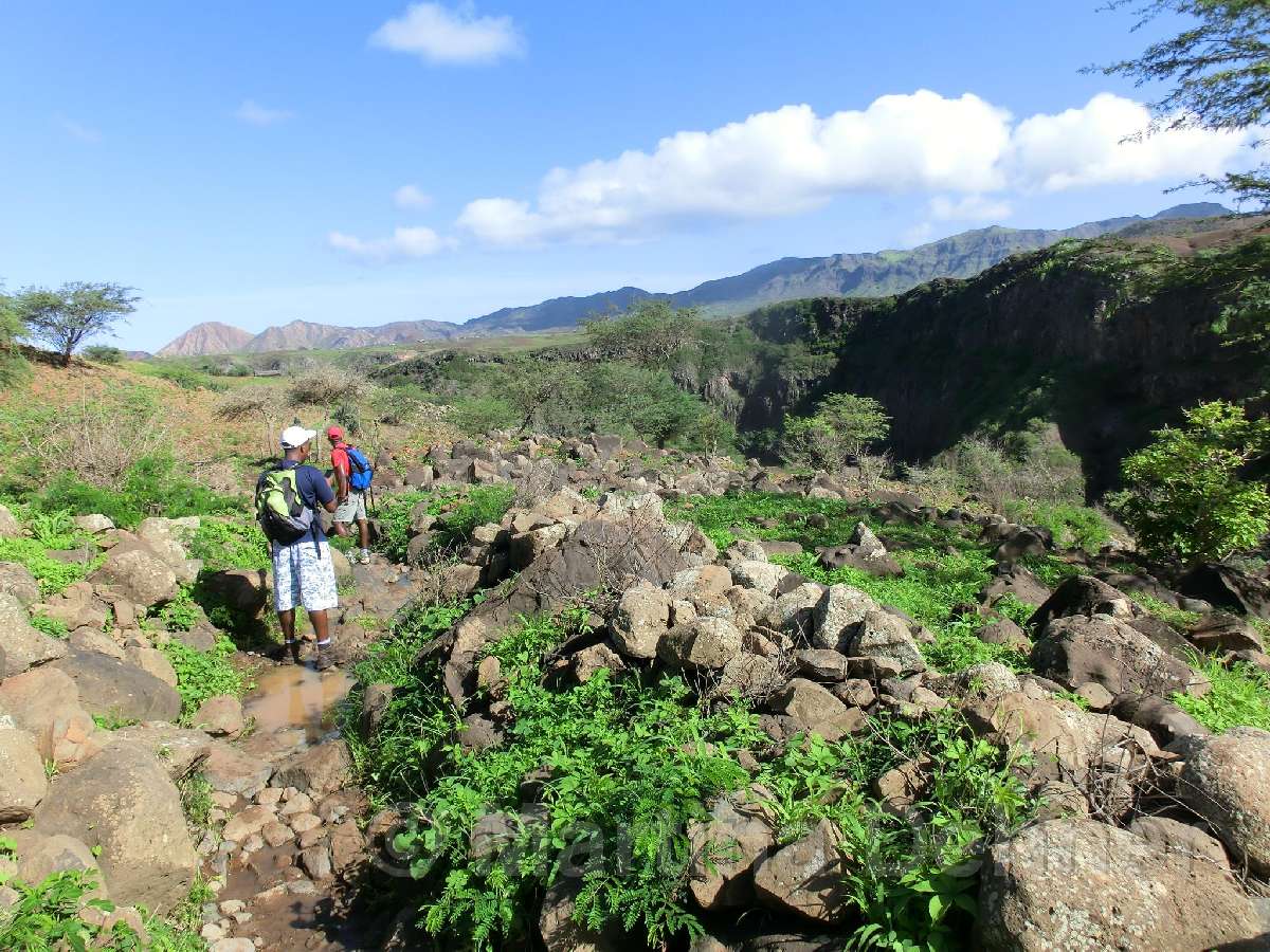 Im Tabugal-Tal angekommen gilt es nicht nur seine Tritte zu beachten, sondern auch die wunderschöne Landschaft. Denn neben den Bananenstauden sowie Mango- und Guaranábäumen gibt es auch Affen und Eisvögel zu entdecken. Ein Großteil der Wanderung verläuft im Flussbett. Nachdem man dieses hinter sich gelassen hat, kann man sich anschauen, wie eine kapverdianische Wäschewaschstation aussieht.