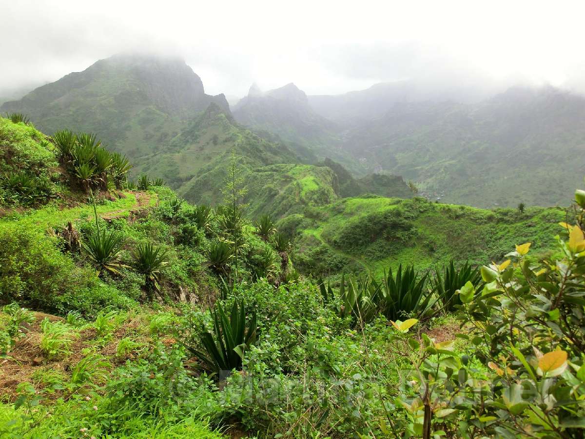 Gleich nach dem Start geht es steil bergauf. Oben angelangt geht es dann auf kurvigen Wegen sofort wieder hinab. Insgesamt folgen zwei weitere Steigungen, allerdings verläuft der Großteil der Wanderung bergab. Gesäumt ist der Weg meist von Algarven, welche meterhohe Blüten tragen, Limettenbäumen und "Língua-da-vaca"-Sträuchern. Zudem führt der Weg oft entlang oder durch Felder der Kapverder, welche dort größtenteils Süßkartoffeln und Mais anpflanzen. In der Ferne kann man auch die dazugehörigen Häuser und Dörfer entdecken, manchmal quert man das ein oder andere Haus auch direkt. Die komplette Wanderung belohnt mit tollen Aussichten. Nach etwa der Hälfte der Strecke gibt es aber eine ganz besondere Aussicht, denn man sieht die West-, Nord- und Ostküste auf einmal. Die Wanderung endet an der Hauptstraße.