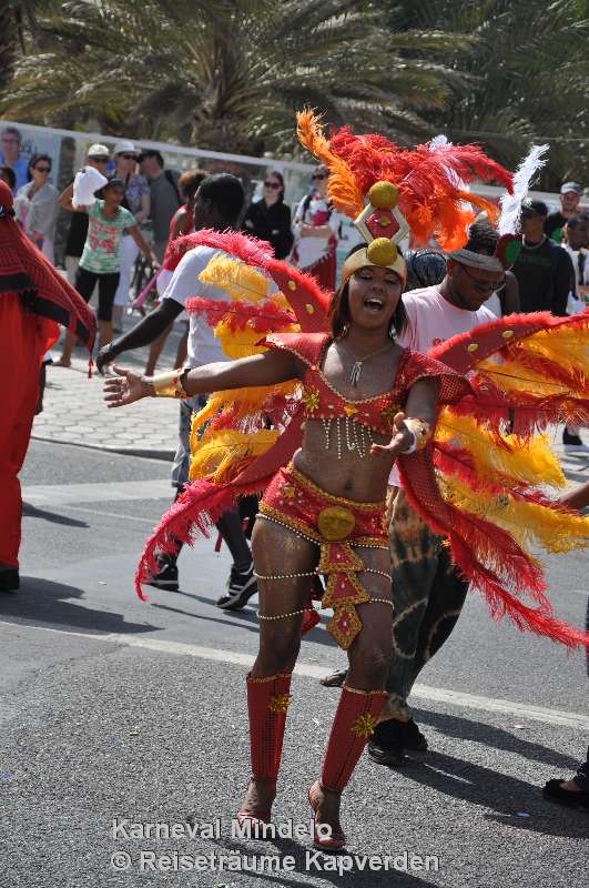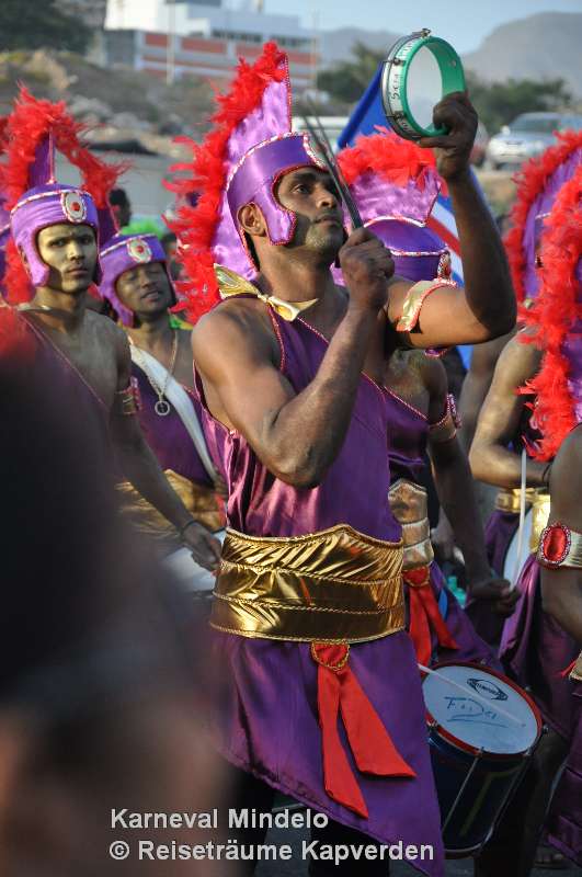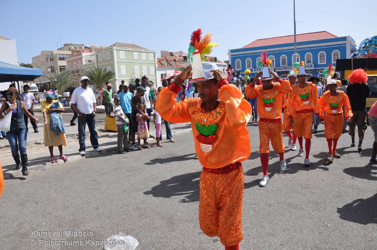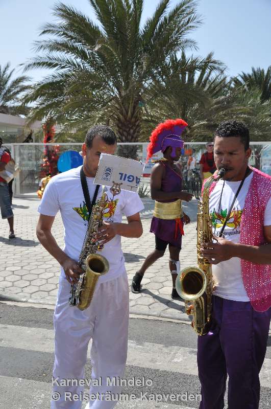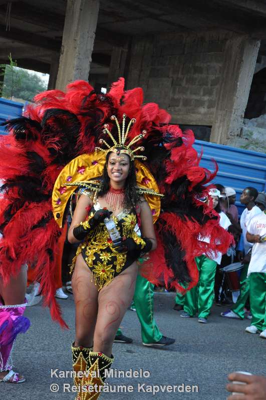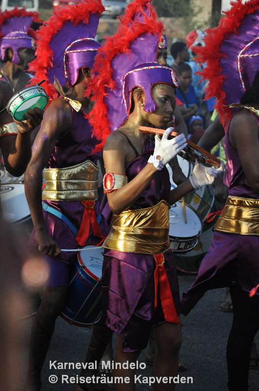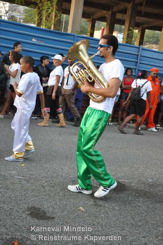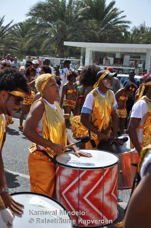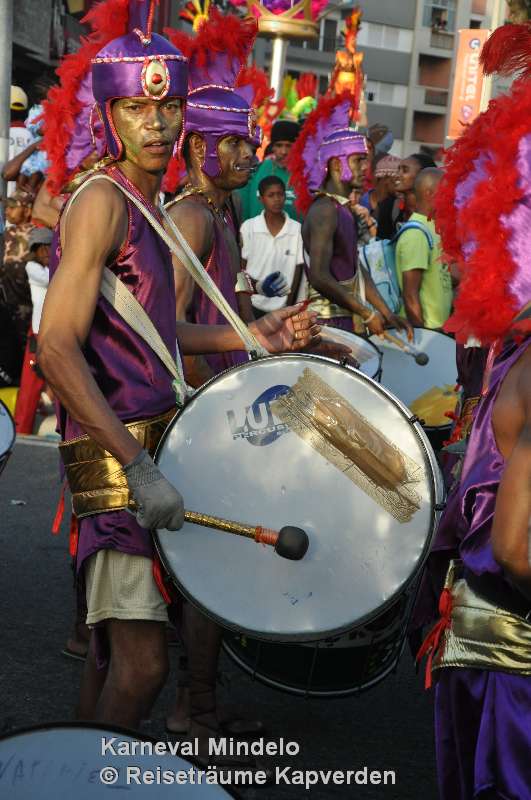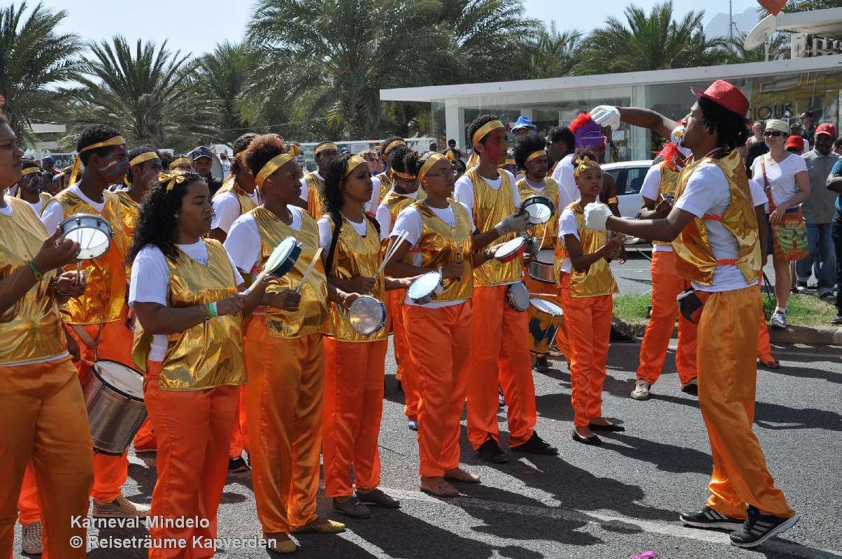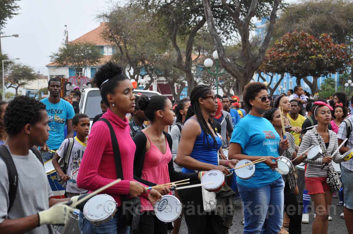 Der Karneval in Mindelo veränderte sich, weg von den rauen Sitten der Kolonialmacht Portugal, wo es üblich war, sich während des Karnevals mit Unrat zu bewerfen. Die Rhythmen der Batucadas (Trommelgruppen), die während des Karnevals durch die Straßen ziehen, vermischen brasilianische Einflüsse (Samba aus Rio de Janeiro, Axé-Rhythmen aus Salvador da Bahia) mit ureigenen kapverdischen Grooves (Coladeira, Batuko, San Jon, Mandingue) zu einem eigenständigen, identifizierbar kapverdischen Mix.