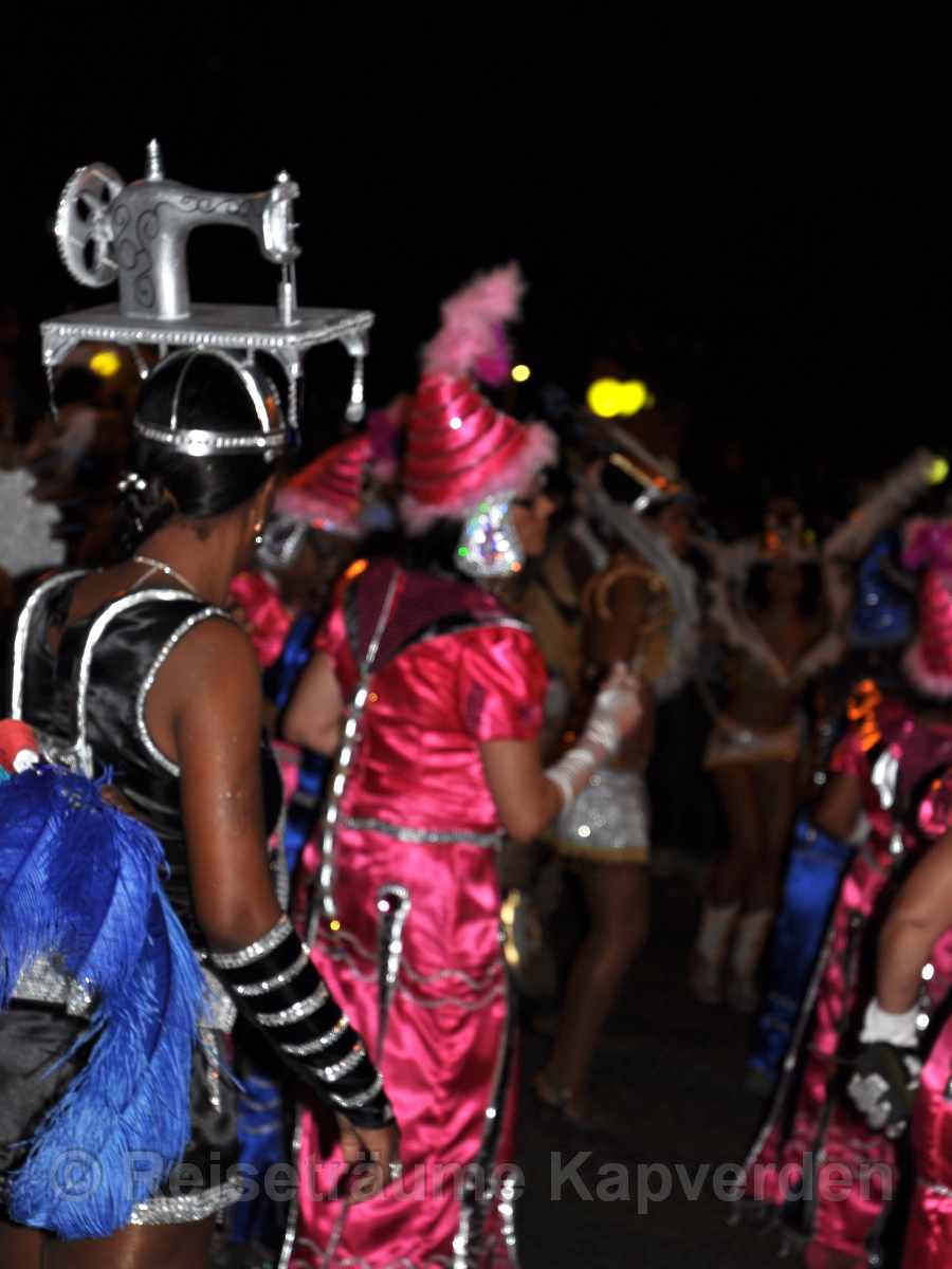 Denn gegen 22:00 beginnt die Samba Tropical Nacht, der Umzug der größten Sambaschule Mindelos. Der Spaß am Karneval steht im Vordergrund, kein Gedanke an einen Wettbewerb soll die Stimmung beeinflussen, es geht einzig darum, die Straßen mit Musik, Tanz und Heiterkeit zu füllen. Die Mitglieder rekrutieren sich aus allen Stadtteilen, viele davon sind auch noch in anderen Sambaschulen aktiv. 2013 ist ein besonderes Jahr, gilt es doch, das 25-jährige Bestehen zu feiern und so lautet denn auch das Thema (Enredo) dementsprechend: Meine Geschichte, meine Insel, 25 Jahre Träume und Fantasie“