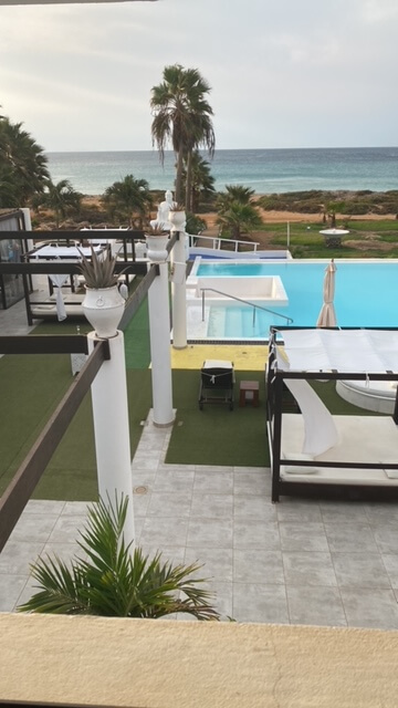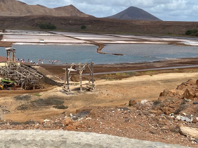 Der nächste Morgen brachte uns dann pünktlich mit Inlandsflug von BestFly nach Sal. Das war für uns doch eine Umstellung: zunächst einmal die komplette Ausrichtung auf den Tourismus, allerdings auch die entsprechende Infrastruktur in Santa Maria. Wir hatten hier großes Glück mit unserem Hotel. Statt in den großen Hotelanlagen im Westen von Santa Maria hatte man uns in das LIVVO Budha Hotel eingebucht, wo wir doch Ruhe und Entspannung finden konnten. Wir waren von dem Trubel des Ortes etwas entfernt, konnten aber die Ortsmitte nach gut zehnminütigem Spaziergang erreichen. Unterwegs lag noch ein wunderbares italienisches Café, wo wir nachmittags Stammgäste waren. Im LIVVO Budha Hotel lohnt sich, auch wenn es nicht unbedingt preiswert ist, auf jeden Fall abends essen zu gehen. Der Koch dort ist ein Meister seines Fachs! Ansonsten besuchten wir auf Sal Pedra de Lume, wo wir in der Saline badeten, sowie den Kite Beach - allerdings als Spaziergänger. Besonders erwähnen möchte ich, dass wir einen Geburtstag in der Gruppe gefeiert haben, der vom Personal des LIVVO Budha sehr liebevoll gestaltet wurde.