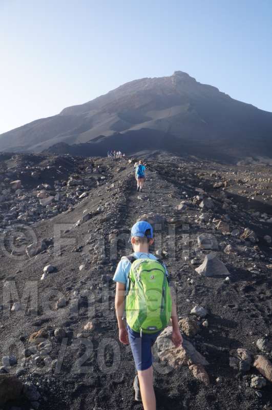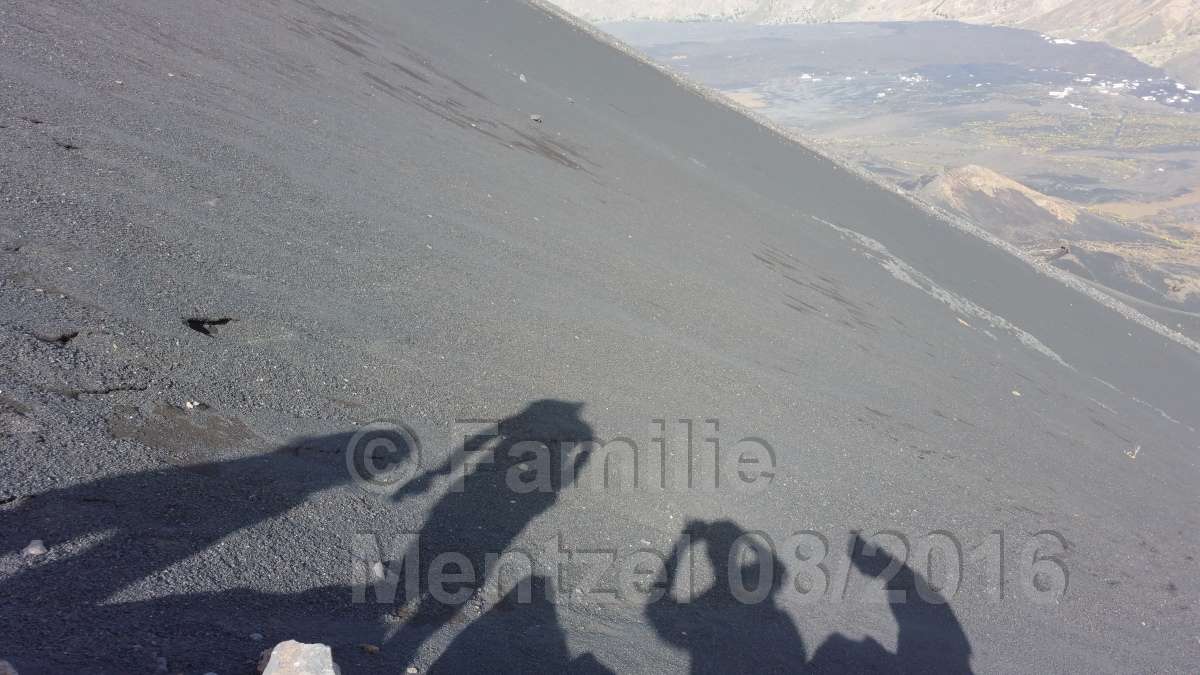 Wir haben auf den großen Pico de Fogo und wieder hinunter 9 Stunden gebraucht. Wie haben Sie das in 5 1/2 Stunden (wie dem Buch "Reise Know How" beschrieben) geschafft? Hier haben uns unsere mitgebrachten Schneegamaschen gute Dienste beim Abwärtssurfen geleistet.