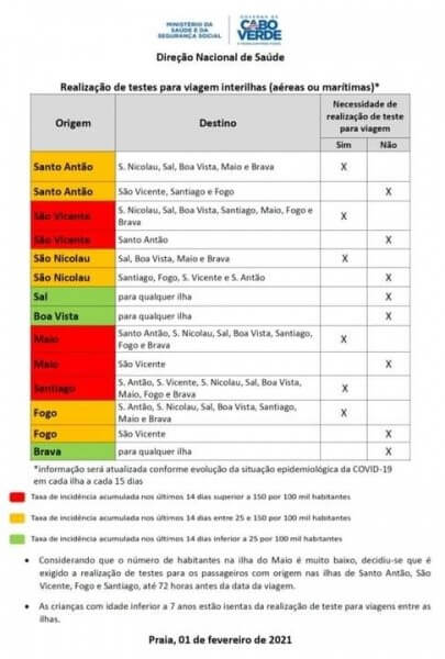 16.04.2020: Auf den drei Inseln mit bestätigten Fällen von Coronavirus (Boa Vista, São Vicente und Santiago) erfolgt die Verlängerung von Mitternacht am 18. April bis zum Ende des 2. Mais, während auf den Inseln ohne bestätigte Fälle die Dauer kürzer sein wird, nämlich bis 26. April um Mitternacht.