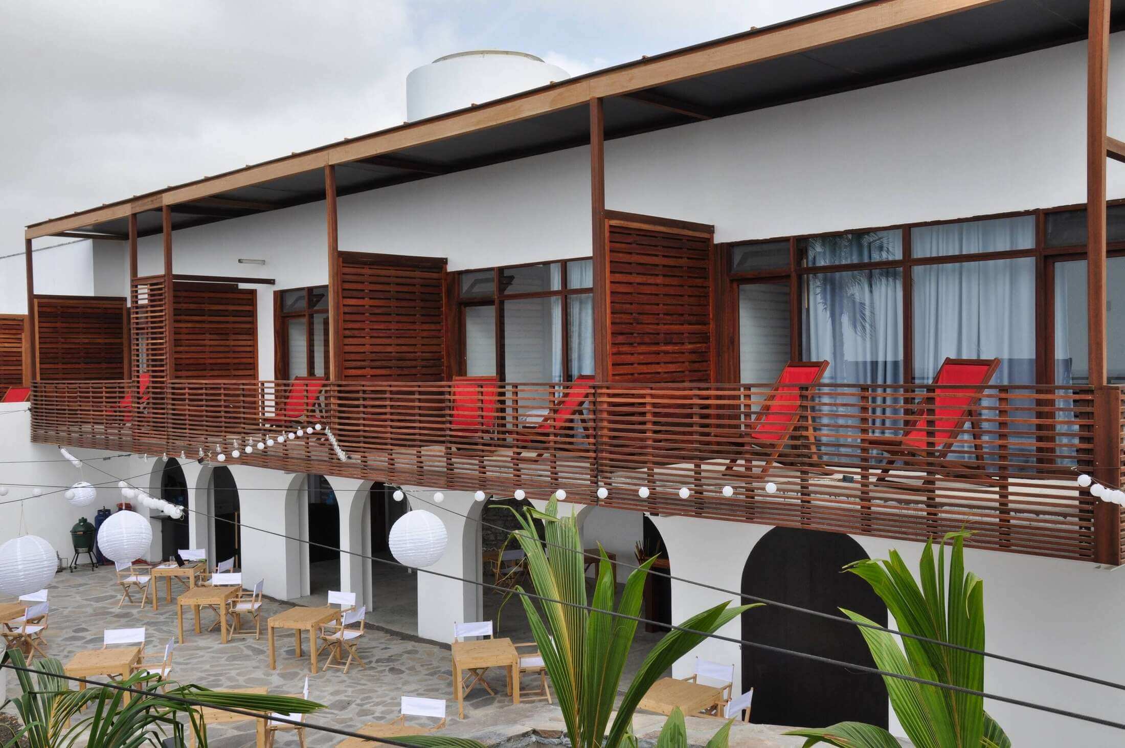 Die liegt auf einer kleinen Felsenklippe am Meer und Sie können gleich morgens über die Badeleiter zum Schwimmen gehen vor dem Frühstück. Zum Palmenstrand von Tarrafal und zum Ortszentrum sind es gerade mal 10 Minuten zu Fuß.