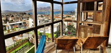Lage: Überhalb der Stadt gelegen und doch zentral mit herrlichem Blick über die Stadt, den Hafen, weit hinaus aufs Meer und auf Santo Antao.